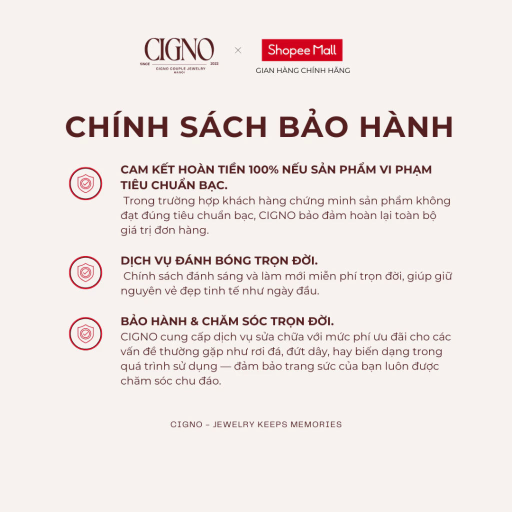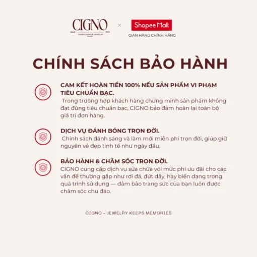 - Chất liệu vòng: Bạc 925 với công nghệ phủ bóng bạch kim 4 lớp đã qua kiểm định.