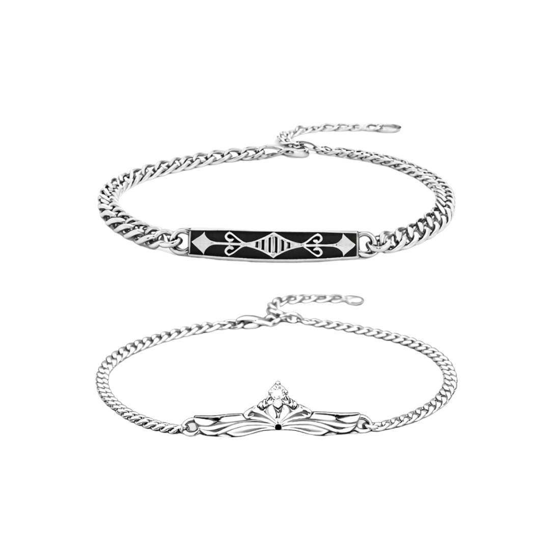 Vòng tay đôi Bạc 925 phủ Bạch kim cao cấp King and Queen CIGNO